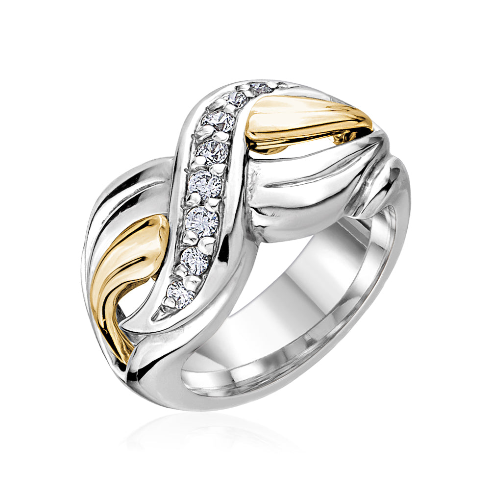 De par sa définition, ''Symbiose'' est une association intime, durable entre deux organismes hétérospécifiques. Voilà ce qui nous a inspiré à développer cette collection qui associe l'argent sterling et l'or 10K. Les accents d'or peuvent être en or blanc, jaune ou rose pour la majorité des créations. Les pierres sont des zircons cubiques de haute qualité (grade 6A) qui imitent le diamant mais dont les coûts de matériaux sont infiniment moindre. Cette collection correspond à une finition haut de gamme à prix abordable!